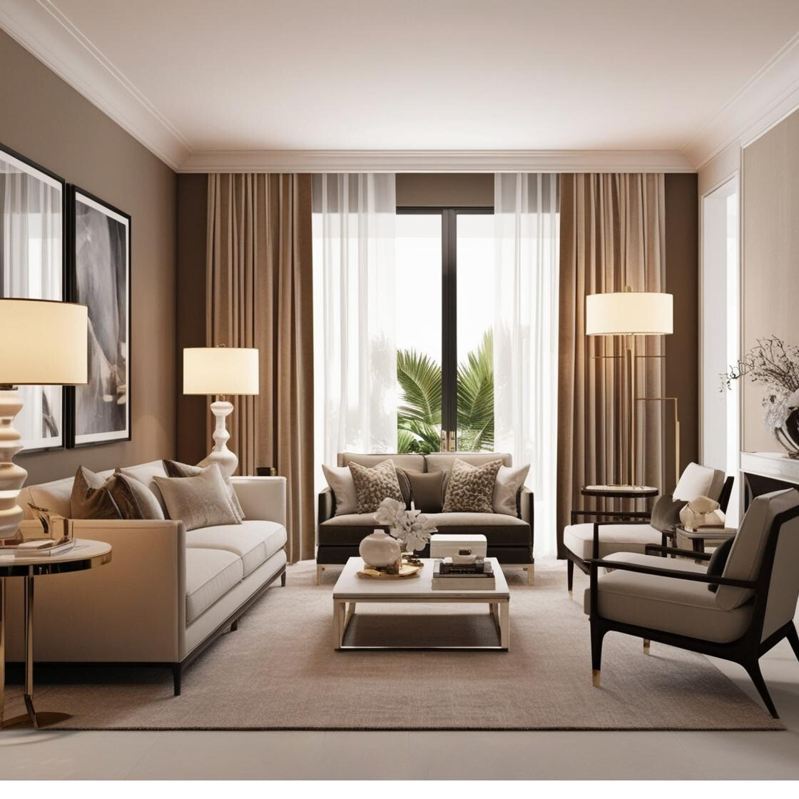 The space is bathed in rich brown and taupe hues, creating a warm, inviting atmosphere that exudes sophistication while offering a serene environment for relaxation.